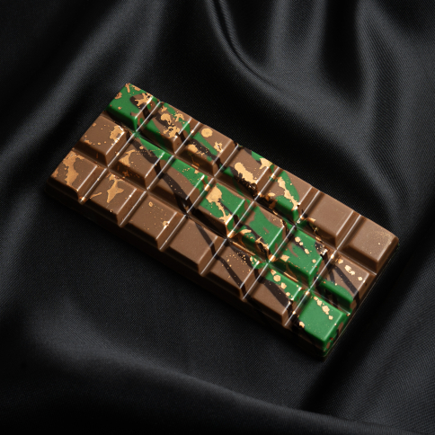 Składniki: cukier, pistacje, tłuszcz kakaowy, pełne mleko w proszku, mąka pszenna, woda, miazga kakaowa, serwatka w proszku, emulgator: lecytyna sojowa; sezam, naturalny aromat: wanilia; sól, barwniki: E100, E133. Masa kakaowa w czekoladzie mlecznej minimum 33 %. Może zawierać jaja, orzeszki ziemne.